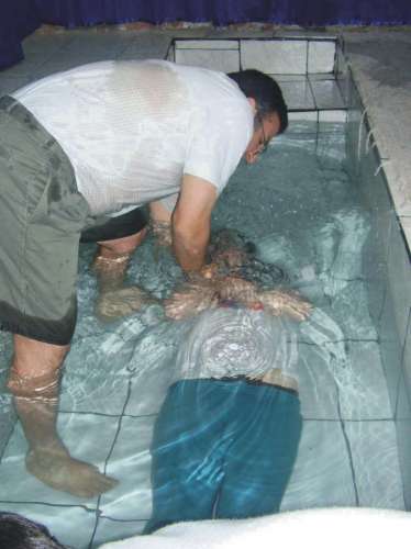 Ladrón se roba un bautisterio portátil. Luego, ¡se bautizan él, sus padres y único hermano en el mismo bautisterio! Una conversión llamativa. En Tipitapa, Nicaragua.